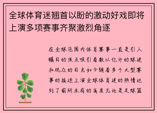 在全球范围内,体育赛事一直是引人瞩目的焦...