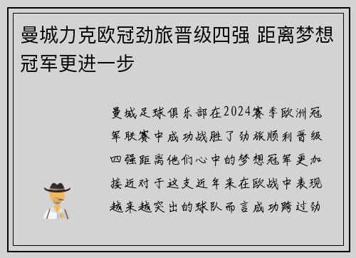 曼城足球俱乐部在2024赛季欧洲冠军联赛...