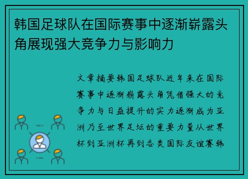 文章摘要:韩国足球队近年来在国际赛事中逐...