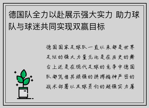 德国国家足球队,一直以来都是世界足坛的强...
