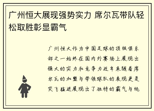 广州恒大作为中国足球的顶级俱乐部之一,始...