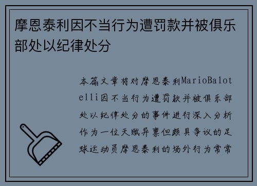 本篇文章将对摩恩泰利(Mario Bal...