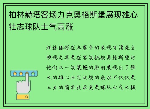 柏林赫塔在本赛季的表现可谓亮点频现,尤其...