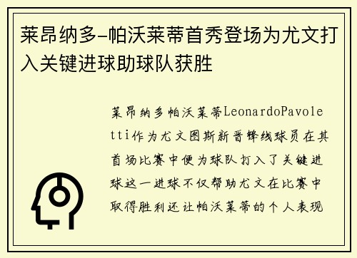 莱昂纳多·帕沃莱蒂(Leonardo P...