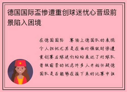 在德国国际盃赛场上,德国队的表现令人担忧...