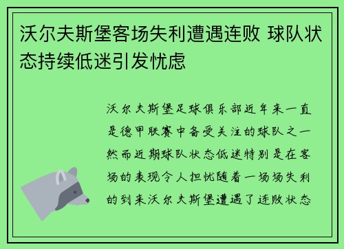 沃尔夫斯堡足球俱乐部近年来一直是德甲联赛...
