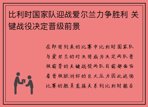 在即将到来的比赛中,比利时国家队与爱尔兰...