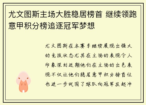 尤文图斯在本赛季继续展现出强大的竞技状态...