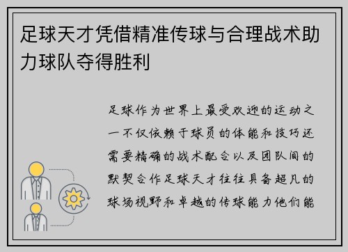足球作为世界上最受欢迎的运动之一,不仅依...